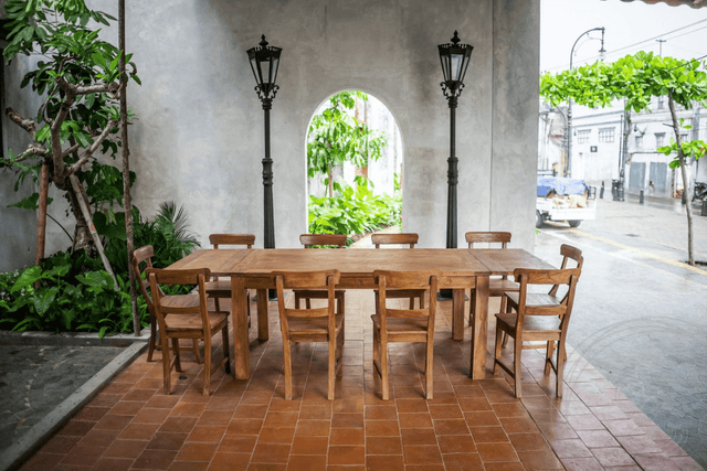 Teak is easy to maintain. Regular cleaning with a damp cloth and a mild or green soap solution keeps the wood in good condition. For teak garden tables, we recommend thorough cleaning at least 1-2 times a year to prevent deposits such as algae or moss. For tables with screw legs, check annually that everything is firmly attached.